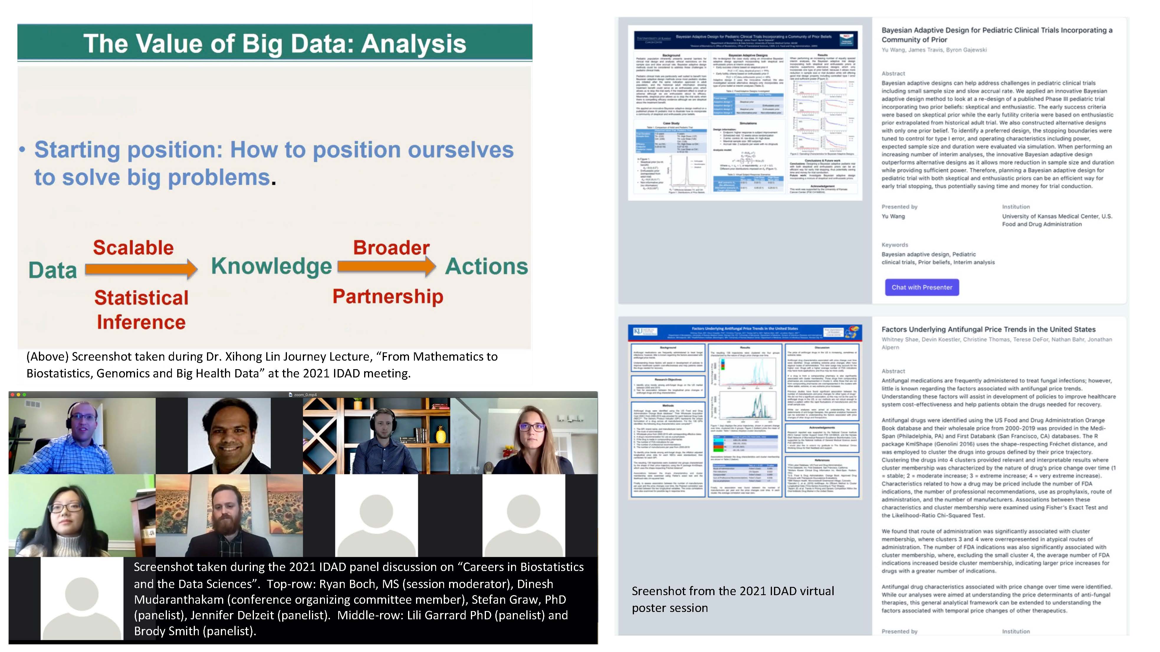 IDAD 2025 is a regional statistics/biostatistics conference that is co-sponsored by the University of Kansas Medical Center Department of Biostatistics & Data Science, Kansas Western-Missouri Chapter of the American Statistical Association, University of Kansas Cancer Center, Quantitative Omics Core that supports the Kansas Institute for Precision Medicine, K-INBRE, and EMB Statistical Solutions, LLC are pleased to announce the 18th annual Innovations in Design, Analysis and Dissemination: Frontiers in Biostatistics & Data Science (IDAD) conference, to be held on April 17th – 18th, 2025. The first annual IDAD meeting took place in 2007. Over the last 17 years this meeting has become a major draw for quantitative/statistical researchers in the Midwest. Historically, IDAD has been held in Kansas City over the course of two days during the month of April. Given concern over COVID-19, 2021 and 2022 IDAD meetings were entirely virtually. 2023 IDAD was the first in-person meeting after the pandemic. This year's meeting will include: a Keynote Address delivered by Dr. Lu Wang, Professor, Department of Biostatistics, University of Michigan.